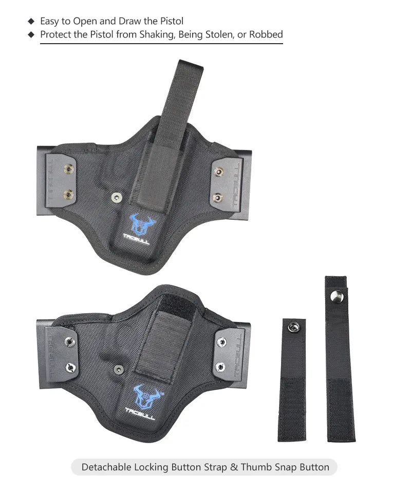 - (4) The detachable locking button strap protects the pistol from shaking, being stolen, or robbed and the thumb snap button allows you to open and draw the gun with one thumb finger.