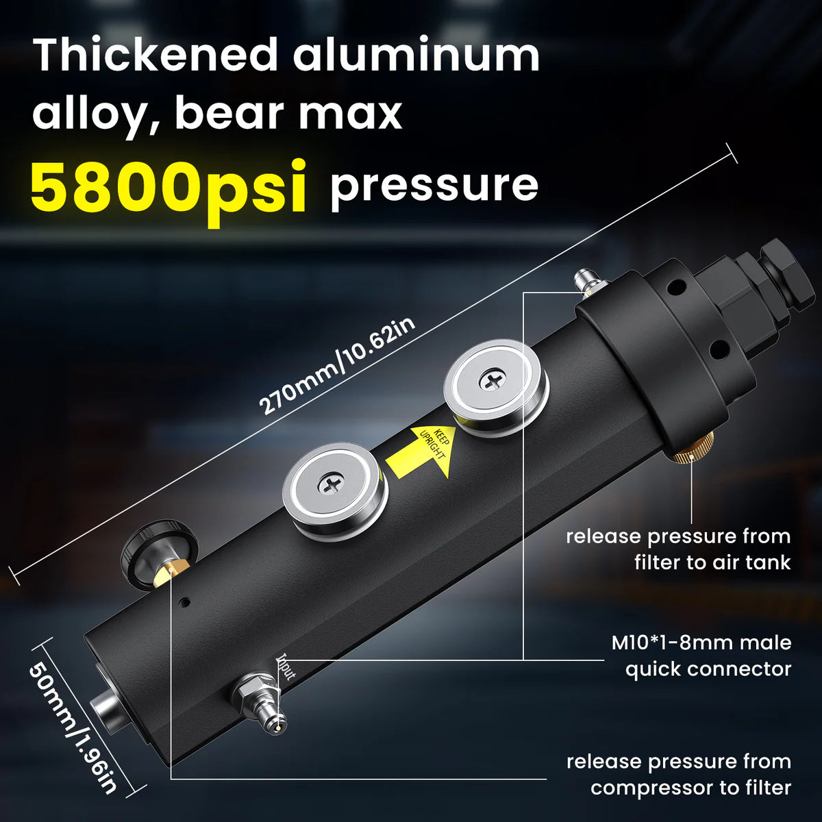 - Heavy-Duty Aluminum Construction: Crafted from seamless aerospace-grade aluminum alloy with 10mm thickened walls (9.68mm actual), this industrial-strength filter withstands 5000+ PSI pressure while featuring anti-slip texture for secure grip and scratch resistance.