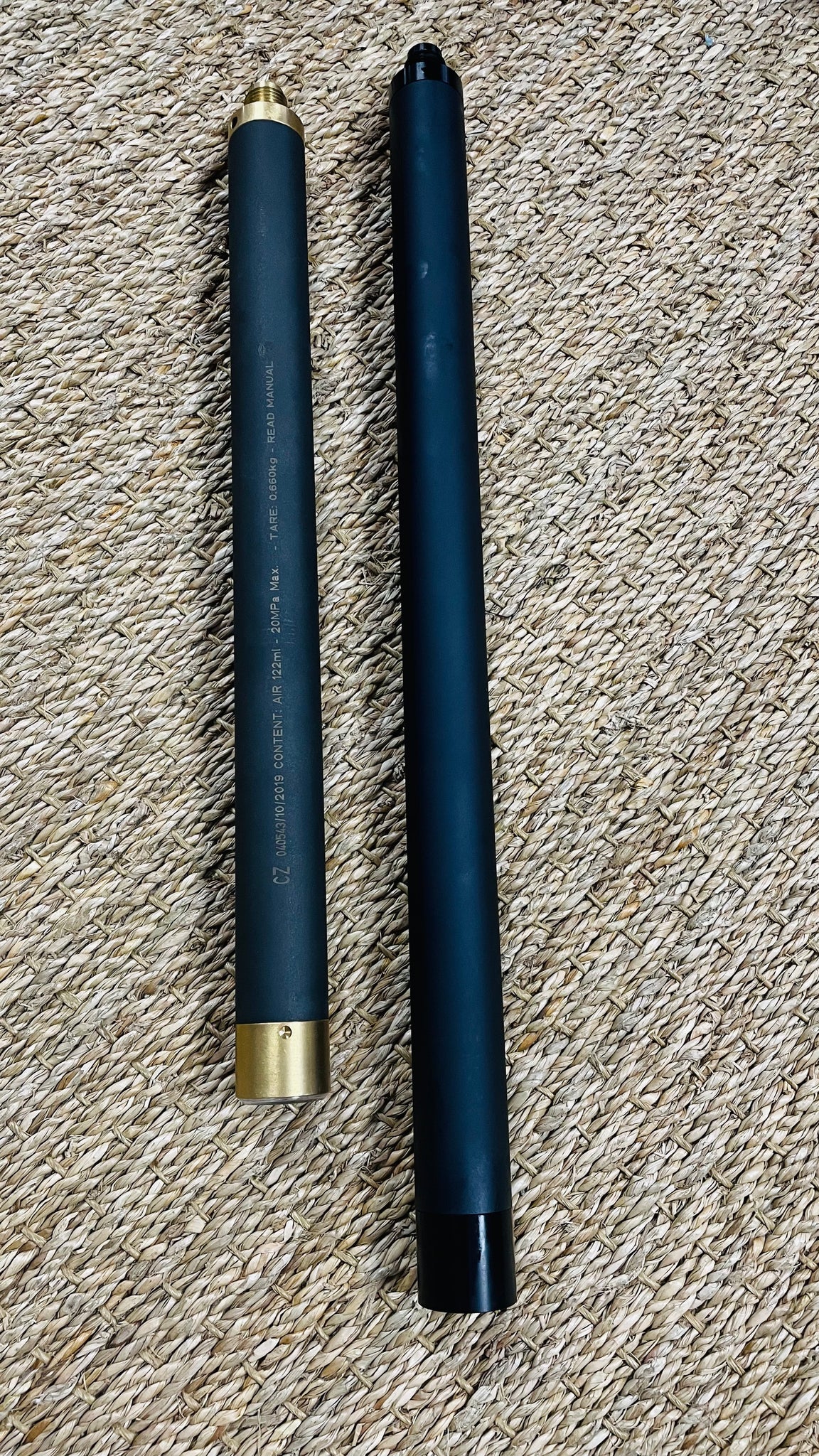 Altaros airtube has compatible fitting design, same as the original CZUB airtubes supplied with airgun. Which is same thread M25x1 and therefore can use the original airtube plugs and accessories offered by us for this airgun. Altaros airtubes are available in two length versions, which have the same length as both variants of the original airtubes from CZUB. Thanks to the use of strength duralumin material has Altaros airtube versus original CZUB almost 3 times lower weight, which is especially useful for shooters who are trying to lighten the front of the gun. Thanks to the use of duralumin (an aluminum alloy) and black anodized surface treatment there is no risk of internal or external corrosion like with the steel original airtube.