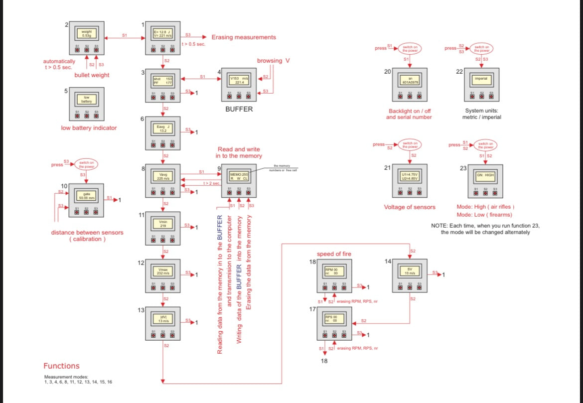 velocity V [m/s], [ f/s ]: 12 – 2000 m/s ( 6500 f/s )