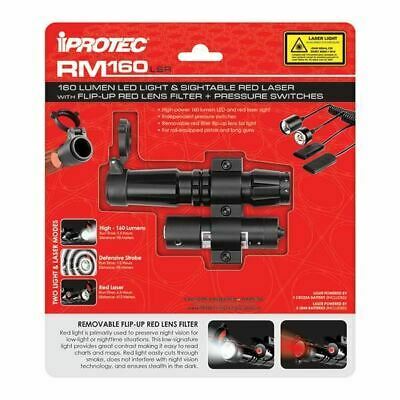 Bring down the game you desire with the iProtec Light and Red Laser Combo with Pressure Switches. Two light modes allow flexible operation, and the red laser is adjustable up to 412 m. Aircraft-grade anodized-aluminum construction allows lasting use.Features and Benefits� Fits most rail-equipped pistols and long guns; not compatible with subcompacts� Made of aircraft-grade anodized aluminum for rugged durability� 2 light modes offer versatility with up to 120 lumens in white mode for up to 1.5 hours at 96 m� Red laser with removable, flip-up lens filter allows easy adjustments up to 412 m� Adjustable hinge-mount design� Water- and impact-resistant construction for use in challenging conditions� Rear-position on/off button and 2 pressure switches. Specifications� Batteries Included:�Yes� Product height (in.):�1.5� Product weight:�8 oz.� Batteries Required:�Yes� Manufacturer warranty - general:�1 year limited� Product depth (in.):�4.25� Number of Batteries:�4� Product width (in.):�2.5� Battery Type:�CR123A� Manufacturer warranty - labor:�1 year limited� Manufacturer warranty - parts:�1 year limited. What's in the Box � iProtec Light and Red Laser Combo with Pressure Switches� 4 CR123A batteries � Owner's manual