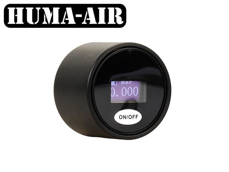 Huma-air Digital mini pressure gauge, 28 mm diameter G1/8BSP Treads, 300 Bar working pressure, with black tactical cover.