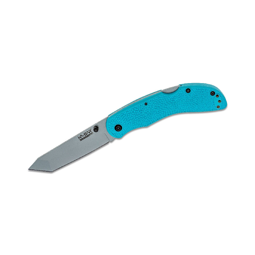 Lightweight, designed with comfortable, eye-catching, ice blue Kraton textured handle, modern tooling, tough steel finished in a durable grey powder coating. Ambidextrous thumb studs with reversible tip-up carry pocket clip, suitable for left-handed carry. The perfect addition to your Ka-Bar EDC collection, whether you're just passionate about the colour or preparing to roaming the stars, defending your own space.