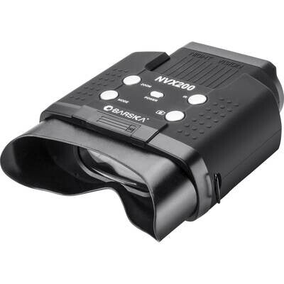 Clearly see up to 2x magnification in complete darkness with the new BARSKA NVX200 Night Vision Binoculars. The dual infrared illuminator allows viewing in complete darkness up to 328ft/100m, and is ideal for a wide variety of nighttime uses such as surveillance and general nighttime observation. The NVX200 also allows the user to capture both images and video for later viewing on a TV or computer. With a rugged water resistant housing, the Barska NVX200 Night Vision Binoculars can endure the elements while providing impressive nighttime viewing quality.