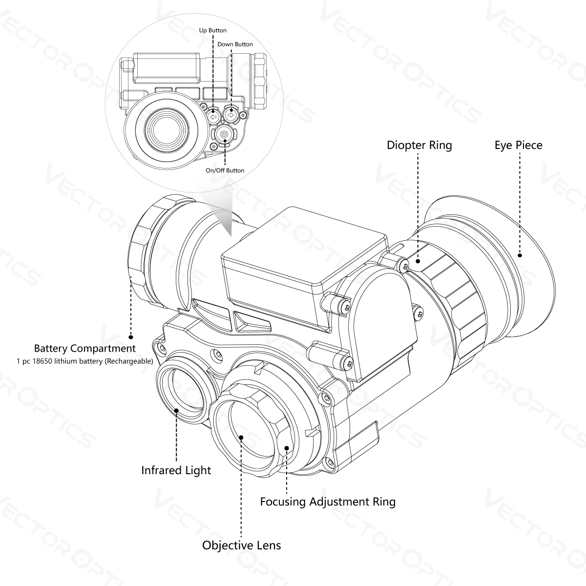 - Diopter Adjustment: -5 ~ +2