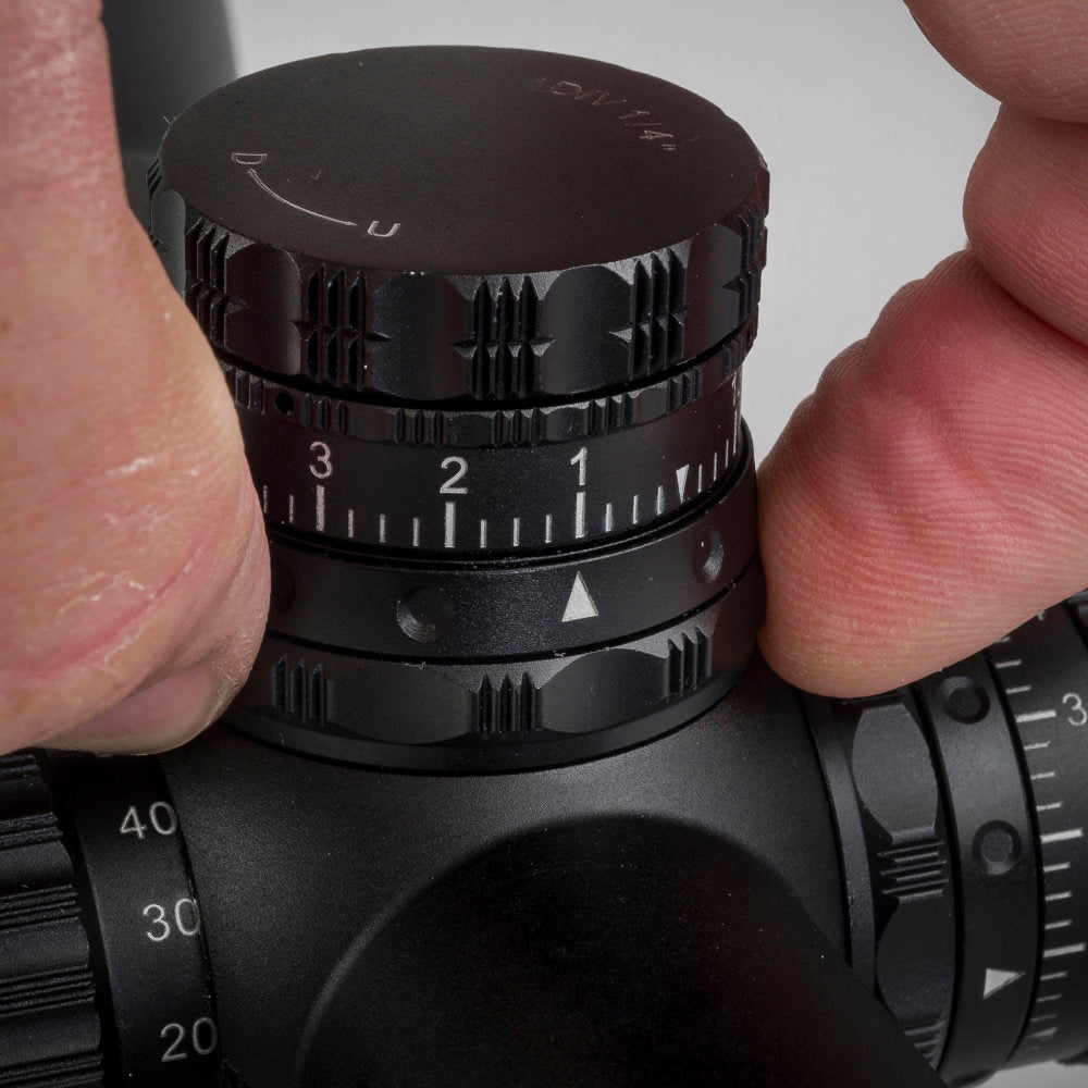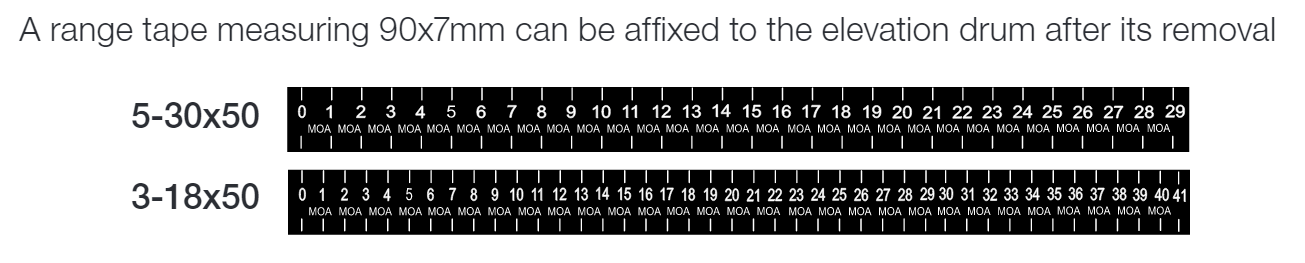 • ‘Smart’ range turret; geared to make up to 3 rotations of the turret relate to a single rotation of a customisable range display window