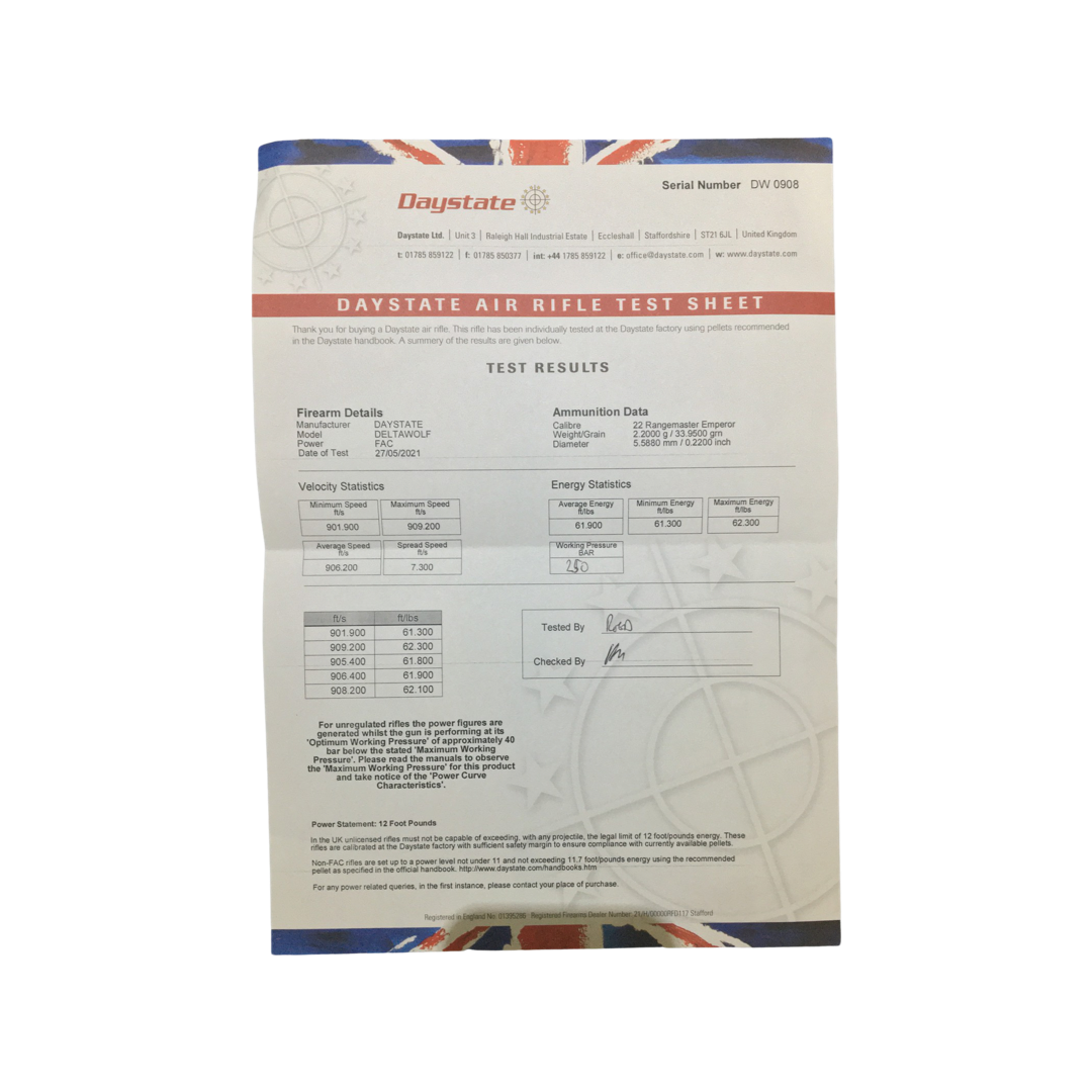 Although users of high-powered air rifles will value the ability to fine-tune the Delta Wolf, a UK legal, licence-free version is also available. Changes include a shorter barrel with a twist rate more suitable for lower velocities and revised power settings that allow adjustment down from 12-foot pound in 5% increments. The onboard chronograph displays after each shot the muzzle velocity, allowing the shooter to confirm that they remain legally compliant with their chosen pellet.