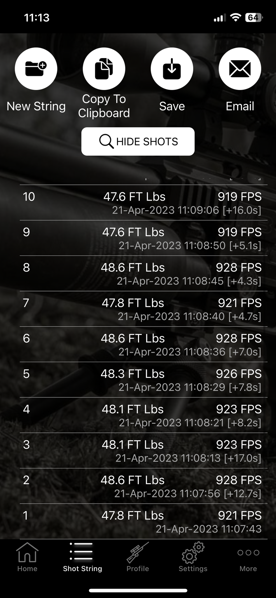 48ftlbs of power with standard settings, reg at 125bar, see chronograph readings at the bottom of the page
