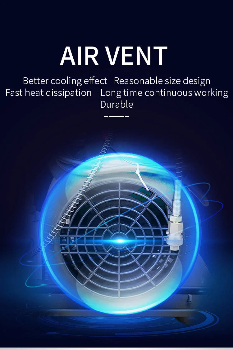- ăCooling systemă: A battery-powered digital thermometer monitors an independent water cooling system. You need to prepare cooling water in an external bucket. Do not start the machine without preparing cooling water. Before using the compressor, replace the oil breather and top up with oil.