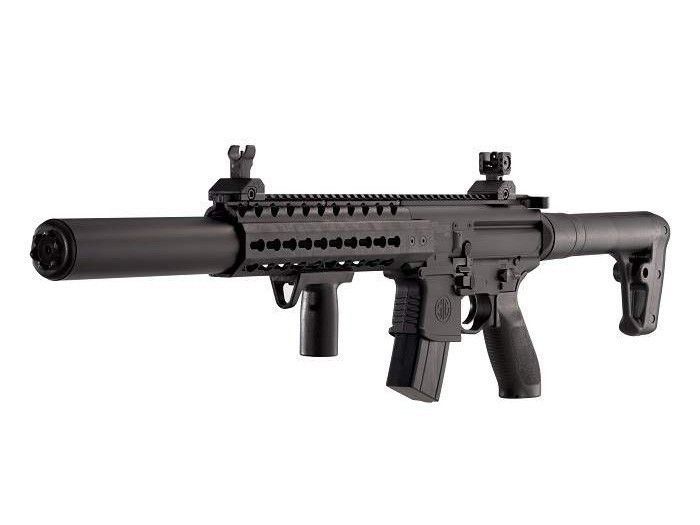 From tactical drills to target practice, the CO2 powered SIG MCX Air Rifle delivers 30 rounds of rapid-firing, simulated SIG MCX performance and handling for more realistic, economical training and practice — any time, any place. Chambered in .177 pellet, features include an 18" rifled steel barrel, synthetic handguard, picatinny rail, tactical front grip, flip-up front and rear sights and more.