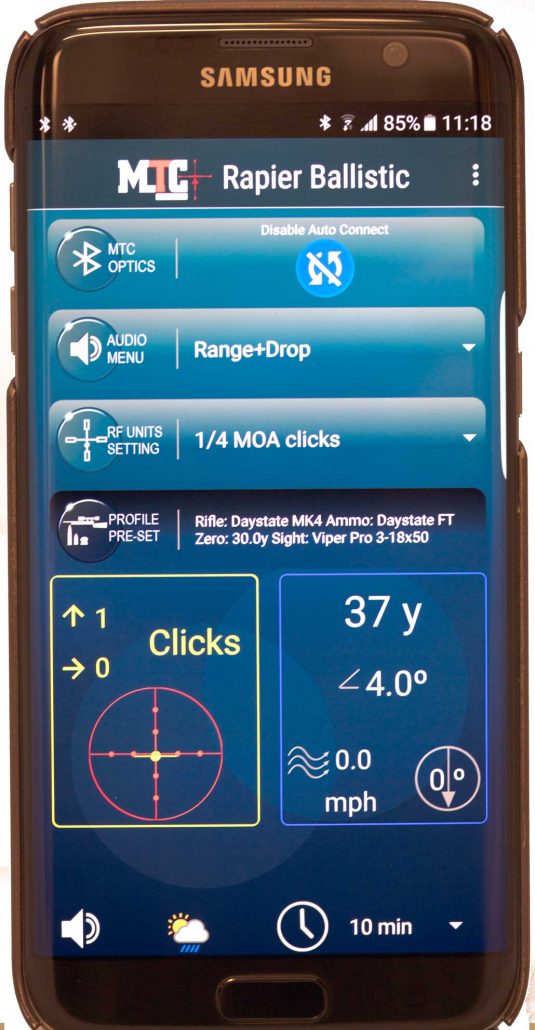 Now, thanks to the rapier ballistics integrated Bluetooth technology, you can not only read off the target’s range from the unit LCD display, but also have your smartphone instantly calculate your scopes point of aim adjustment in clicks, Mills or minutes of angle.