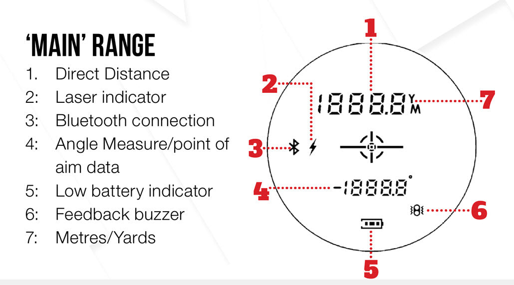 - 5 to 1200 metres (1300 yards) effective laser range with accuracy to + or –  one metre