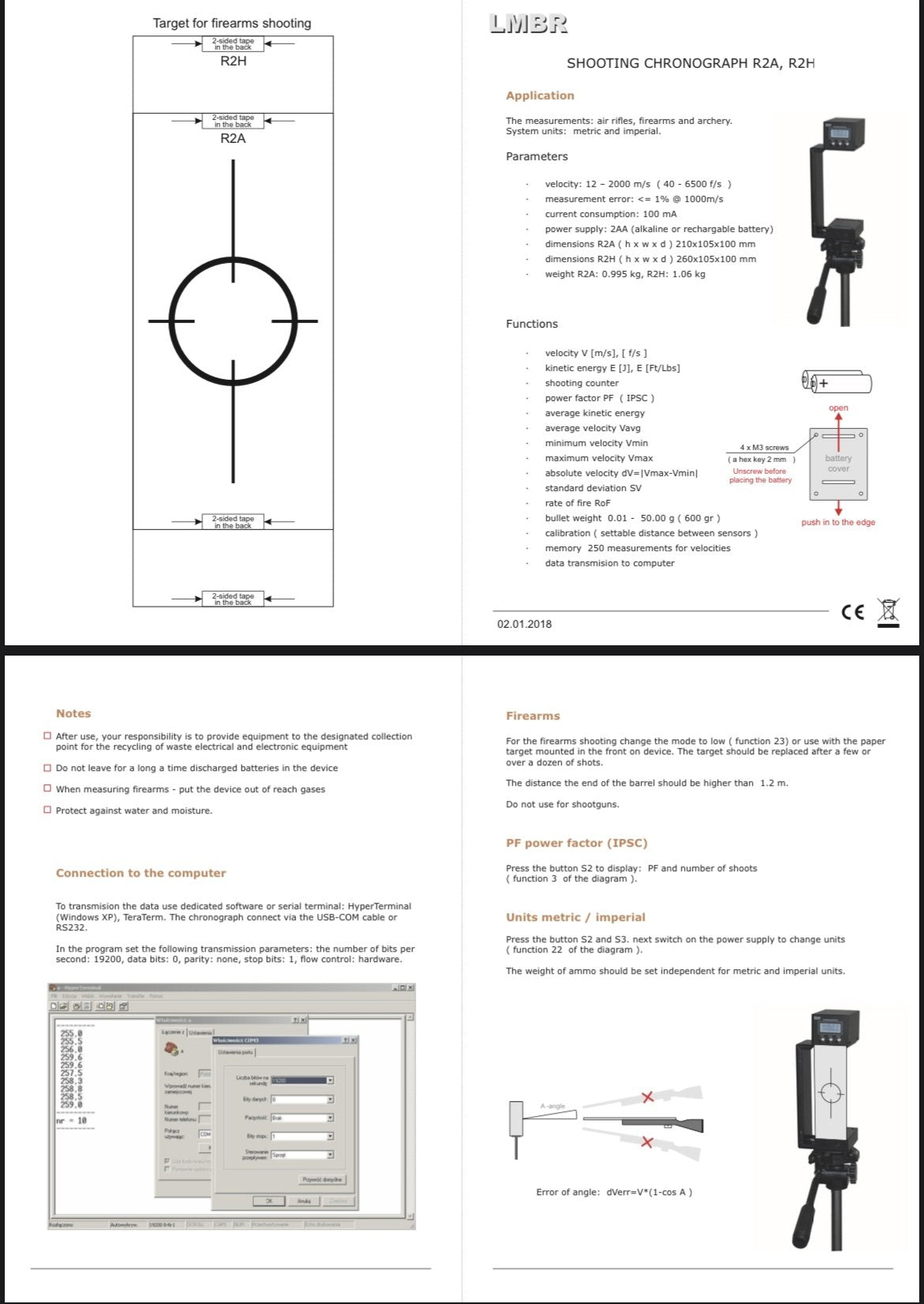 velocity V [m/s], [ f/s ]: 12 – 2000 m/s ( 6500 f/s )
