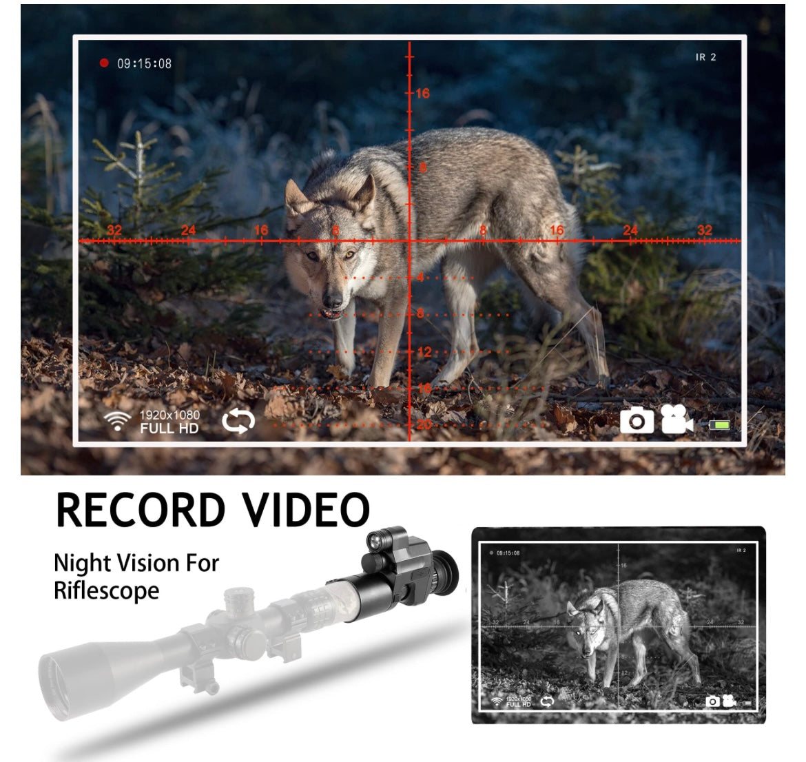 You can use your phone,PC,tablet as a viewfinder as long as you connect our night vision with wifi!Wi-Fi Streaming - allow you to record all of your hunting trips.