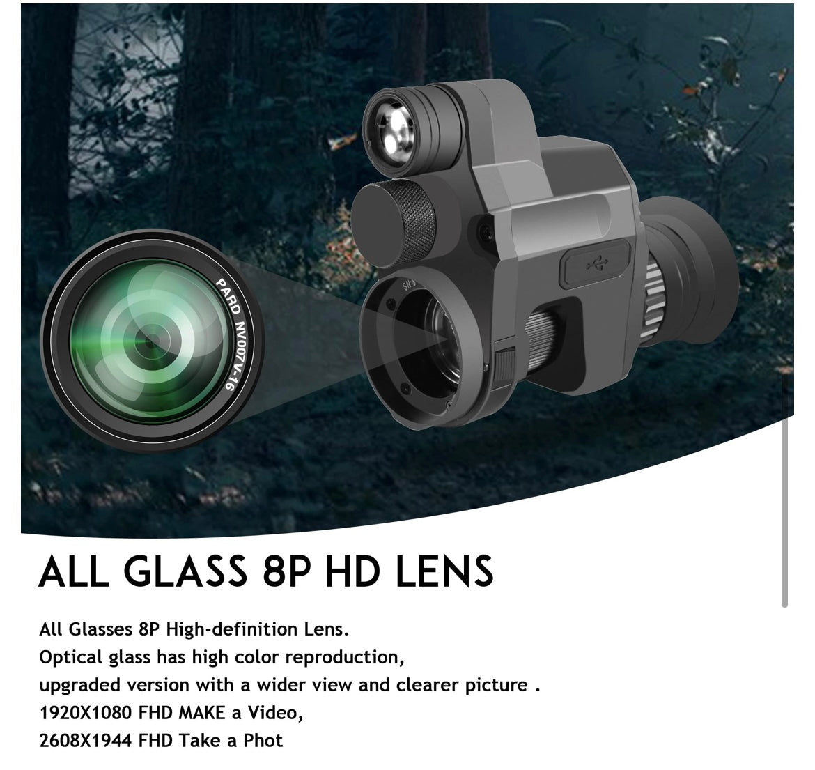 • ★WIFI FUNCTION:You can use your phone,PC,tablet as a viewfinder as long as you connect our night vision with wifi!It’s really convenient for you to watch on your phone simultaneously!