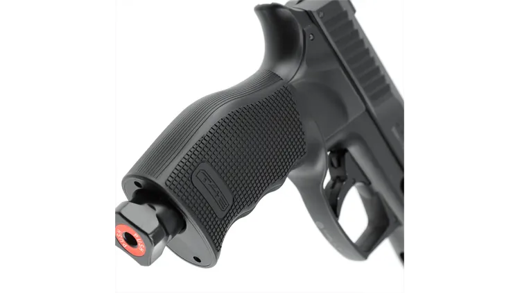 The most important features of this update include an optimized grip texture, a high-contrast fiber optic sight and an innovative tool-free Quick-Piercing System with integrated pressure release. The 12 g COâ‚‚ capsule in the grip is only pierced when needed, and a light blow at the bottom of the grip is sufficient. In this way users are guaranteed full capsules and can be sure of the best performance even after long periods of storage. A pressure indicator that can be clearly seen and felt shows whether the marker is ready for action. Any remaining pressure is easily and safely released by a quarter turn of the screw at the bottom of the grip.