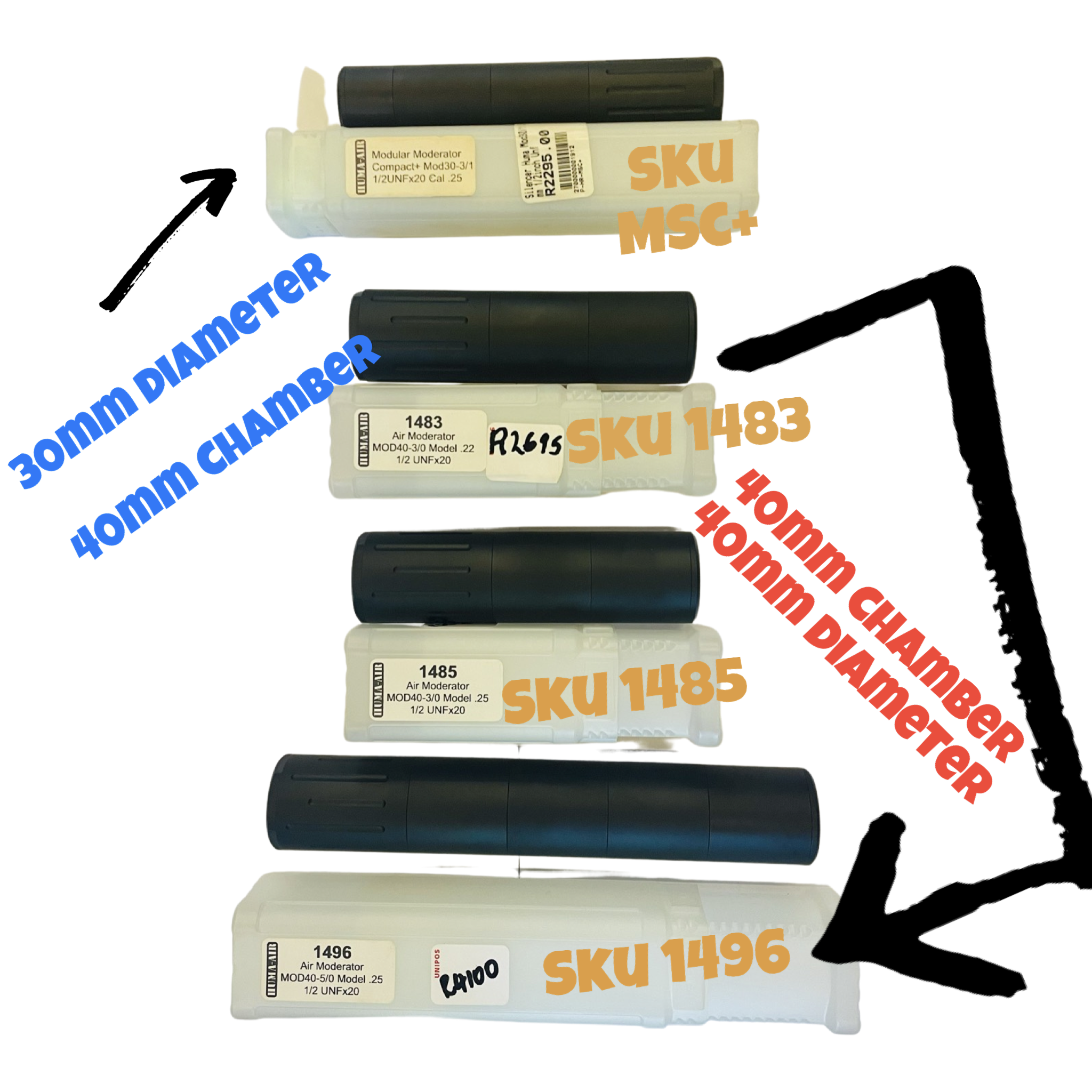 Huma-Air Modulair Airgun Silencer or Moderator MOD40, with 3 x 40 mm chambers for excelent noise reduction