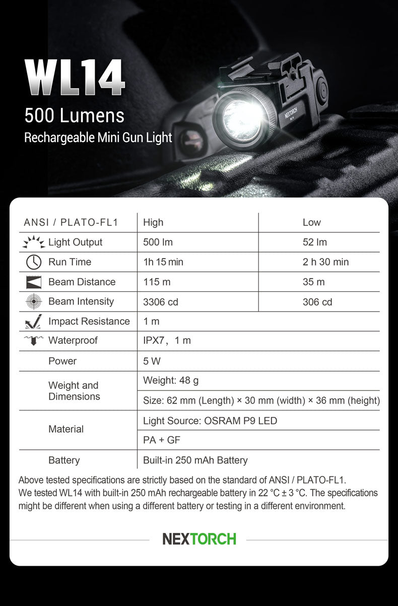 Nextorch WL14 500 Lumens Rechargeable Mini Tactical Light