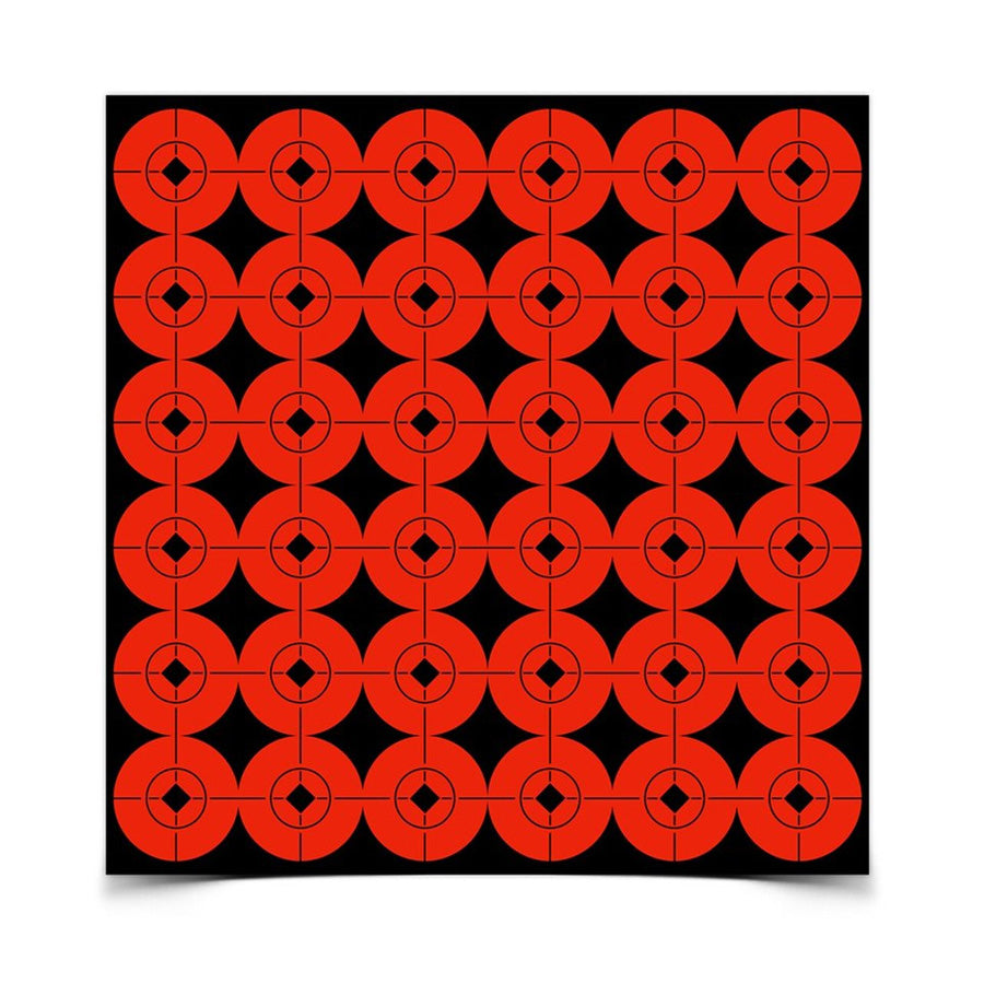 CONVENIENT TARGET SPOTS® SELF-ADHESIVE ORANGE TARGETS CREATE INSTANT BULL’S-EYES FOR ALL TYPES OF TARGET PRACTICE. THE HIGH-CONTRAST, RADIANT ORANGE COLOR LETS YOU SEE A SHARPER SIGHT PICTURE AND BULLET HOLES MORE CLEARLY FOR BETTER SCORES AND SMALLER GROUPS.